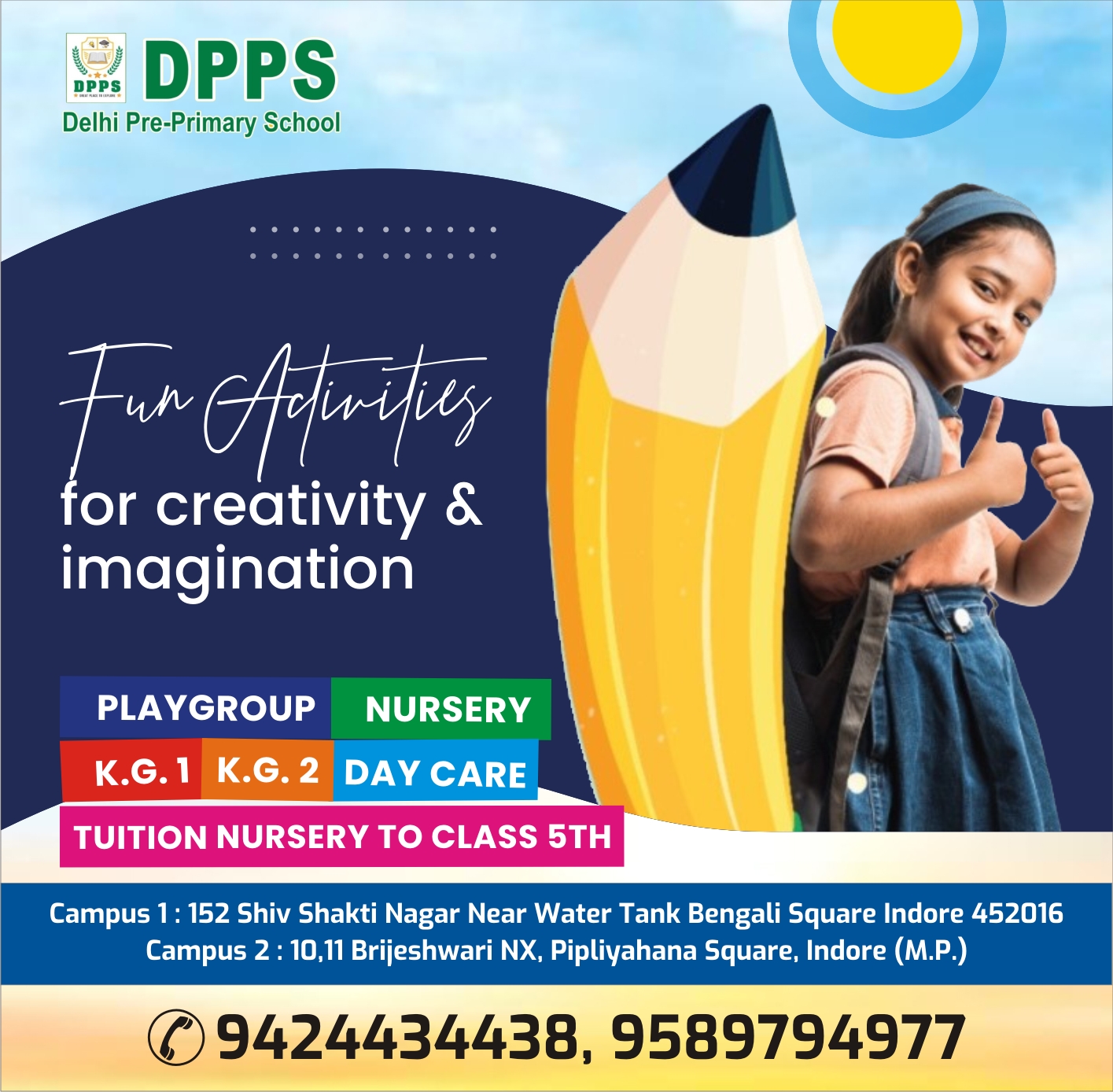 Delhi Pre Primary School is recognized as one of the best nurseries in Indore, offering a nurturing and joyful learning environment for young minds. š¼ Our nursery program focuses on child-centered and play-based learning, helping children explore, imagine, and grow at their own pace. With qualified and caring teachers, we ensure that every child receives personal attention and emotional support.